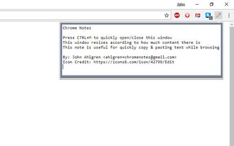 Chrome Notes est une extension conçue pour améliorer l'expérience de prise de notes directement dans le navigateur Chrome. Cette extension gratuite permet aux utilisateurs de saisir rapidement des textes en utilisant un simple raccourci clavier. En appuyant sur CTRL+M, une fenêtre contextuelle s'ouvre, offrant un espace pratique pour écrire ou coller des informations. Il s'agit d'un outil idéal pour ceux qui souhaitent capturer des idées ou des informations sans quitter leur navigateur.